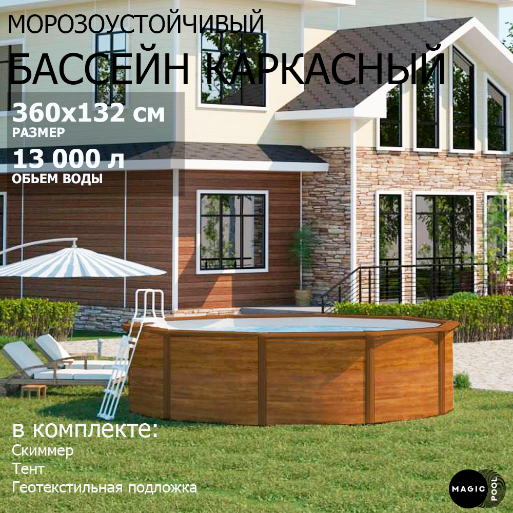 Морозоустойчивый бассейн MAGIC POOL / 360х132 см / скиммер, тент, подложка / цвет дерево / PR3613WB
